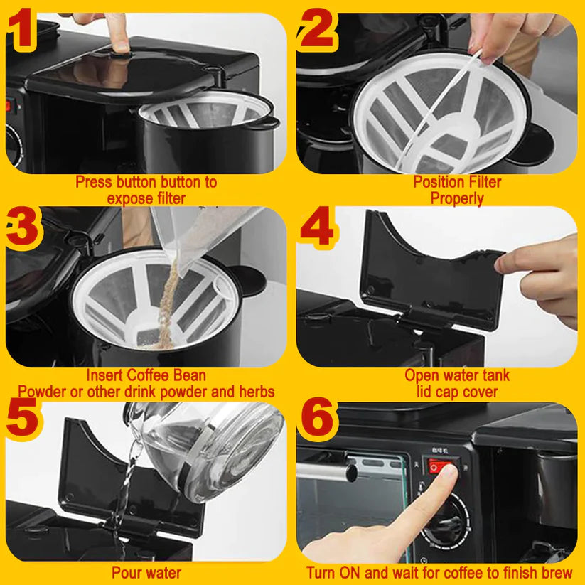 idrop 3 IN 1 Multifunctional Breakfast Maker Cooker Baking Oven & Coffee Maker